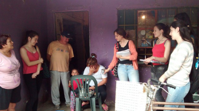 La Dirección de Gestión de Riesgo de la municipalidad solicitó al equipo de docentes-investigadoras la realización de una experiencia piloto de construcción de mapa de riesgo en el barrio Villa Oculta de la ciudad de Santa Fe. “Es por eso que trabajamos en primera instancia con integrantes del Movimiento Los Sin Techo para tener una aproximación al barrio y conocer la organización. Luego se convocó a los estudiantes de primer año de la carrera Licenciatura en Terapia Ocupacional, que cursan la materia Fundamentos, Métodos y Técnicas de T.O. a participar de la propuesta, con la que acreditaban el tema Análisis Comunitario”, explica la docente. Una vez que se designaron los grupos de estudiantes por docentes, comenzó el recorrido por el barrio y cada grupo pudo observar las condiciones en las que viven los vecinos, como así también entrevistar a diferentes pobladores con la finalidad de conocer sus estilos de vida, trabajo, escolaridad, salud, composición familiar, organizaciones sociales e instituciones existentes en el barrio, con el objetivo de construir el análisis comunitario como primer paso para el mapa de riesgo. “Esto llevó todo el cuatrimestre y para finalizar la experiencia se proyectaron los datos recabados en dos encuentros-talleres, uno en el barrio con los vecinos, con el fin de poder compartir y confirmar, o no, todo lo obtenido por parte de ellos, y otro en la Facultad con sus compañeros, con el fin de conocer la experiencia”, expresó Ariño.