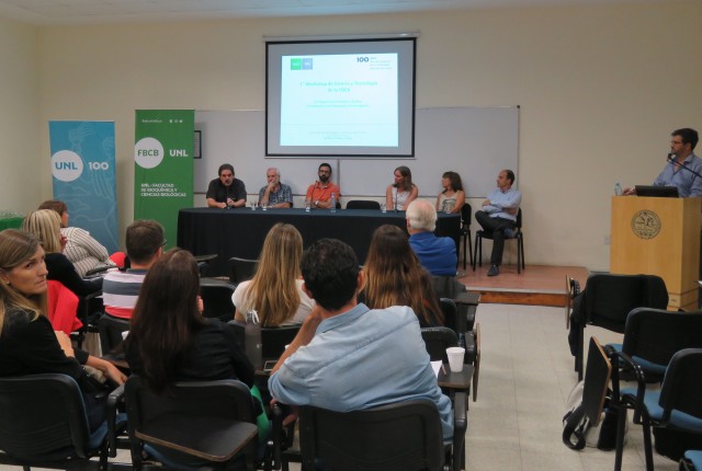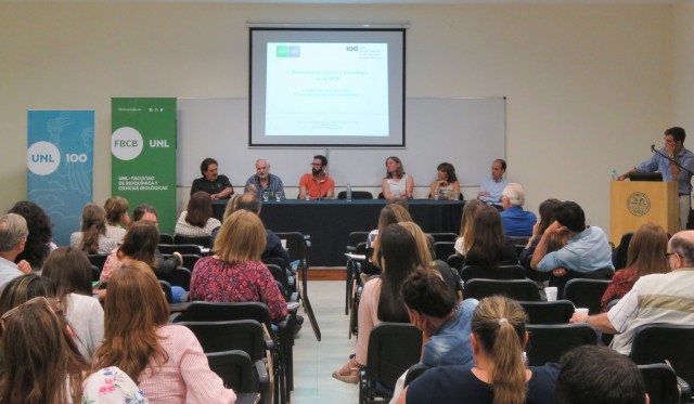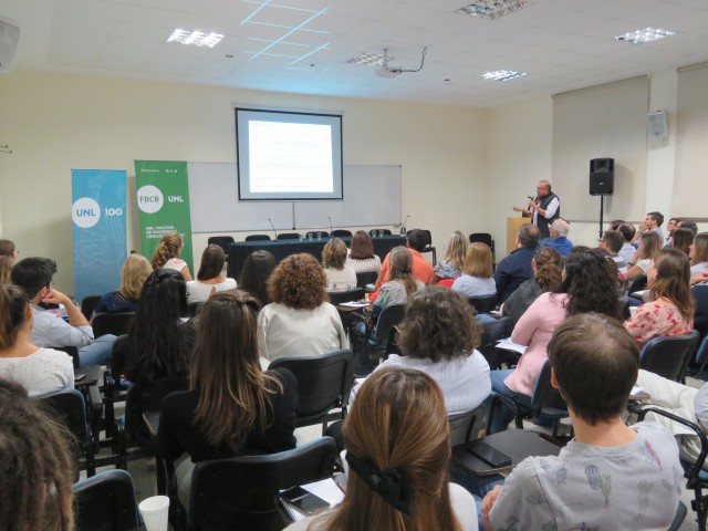 La actividad se realizó en el Aula Magna “Malvinas Argentinas” y estuvo destinada a investigadores, becarios y directores de los grupos de investigación de la FBCB así como también de los Institutos de doble dependencia como el Instituto de Salud y Ambiente del Litoral (ISAL) y el Instituto de Agrobiotecnología del Litoral (IAL).