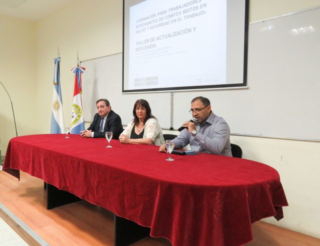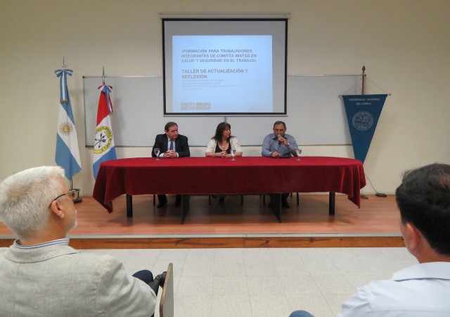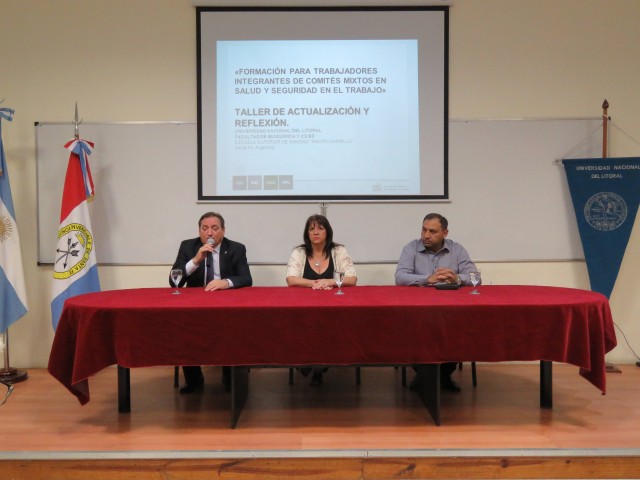 La decana de la Facultad de Bioquímica y Ciencias Biológicas (FBCB), Adriana Ortolani presidió el acto de apertura del Taller de Actualización y Reflexión 2018 que se llevó a cabo en el marco del curso "Formación para Trabajadores Integrantes de Comités de Salud y Seguridad en el Trabajo", organizado por la FBCB, la coordinación de la carrera de Licenciatura en Higiene y Seguridad en el Trabajo de la Escuela de Superior de Sanidad “Dr. Ramón Carrillo” (ESS); el Ministerio de Trabajo y Seguridad Social Provincial, y la Confederación General del Trabajo de Santa Fe (CGT), a través de las diversas organizaciones sindicales que la conforman.