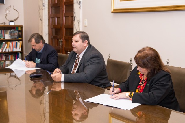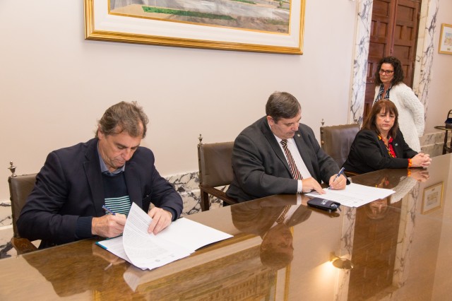 La rúbrica se llevó a cabo el 12 de mayo en el despacho del Rector, participaron la decana de la FBCB, Adriana Ortolani y el ministro de Desarrollo Social de la Provincia, Danilo Capitani. También estuvieron presentes el director de la Escuela Superior de Sanidad (ESS), Germán Boero; la directora provincial de Personas Mayores, Lucía Billoud y el subsecretario de Políticas de Inclusión y Desarrollo Territorial, Santiago Felipoff.